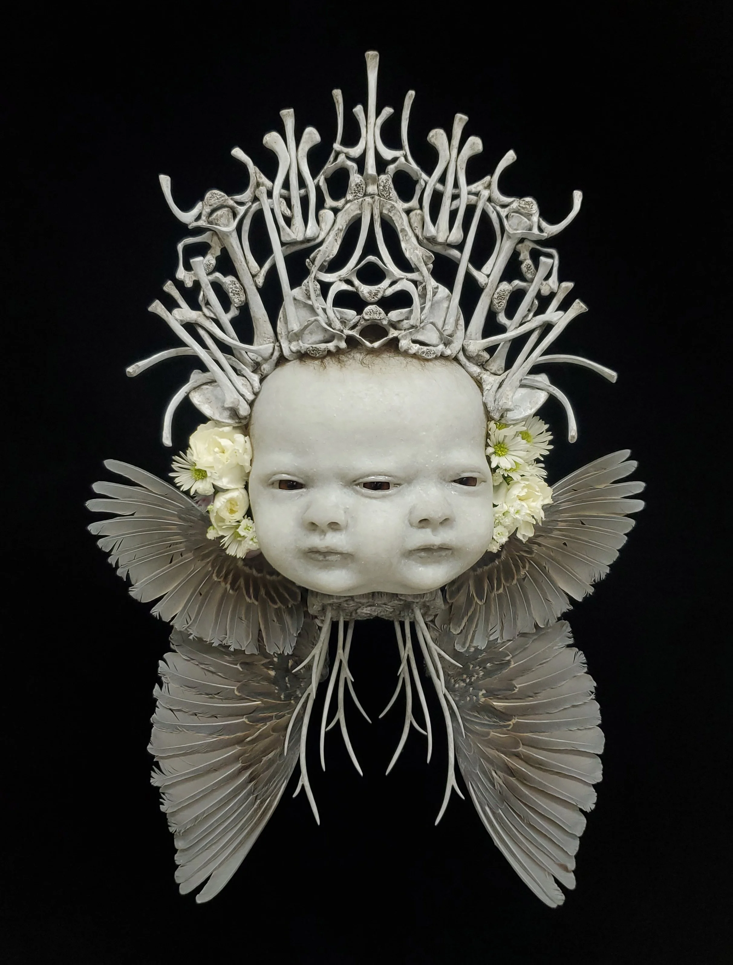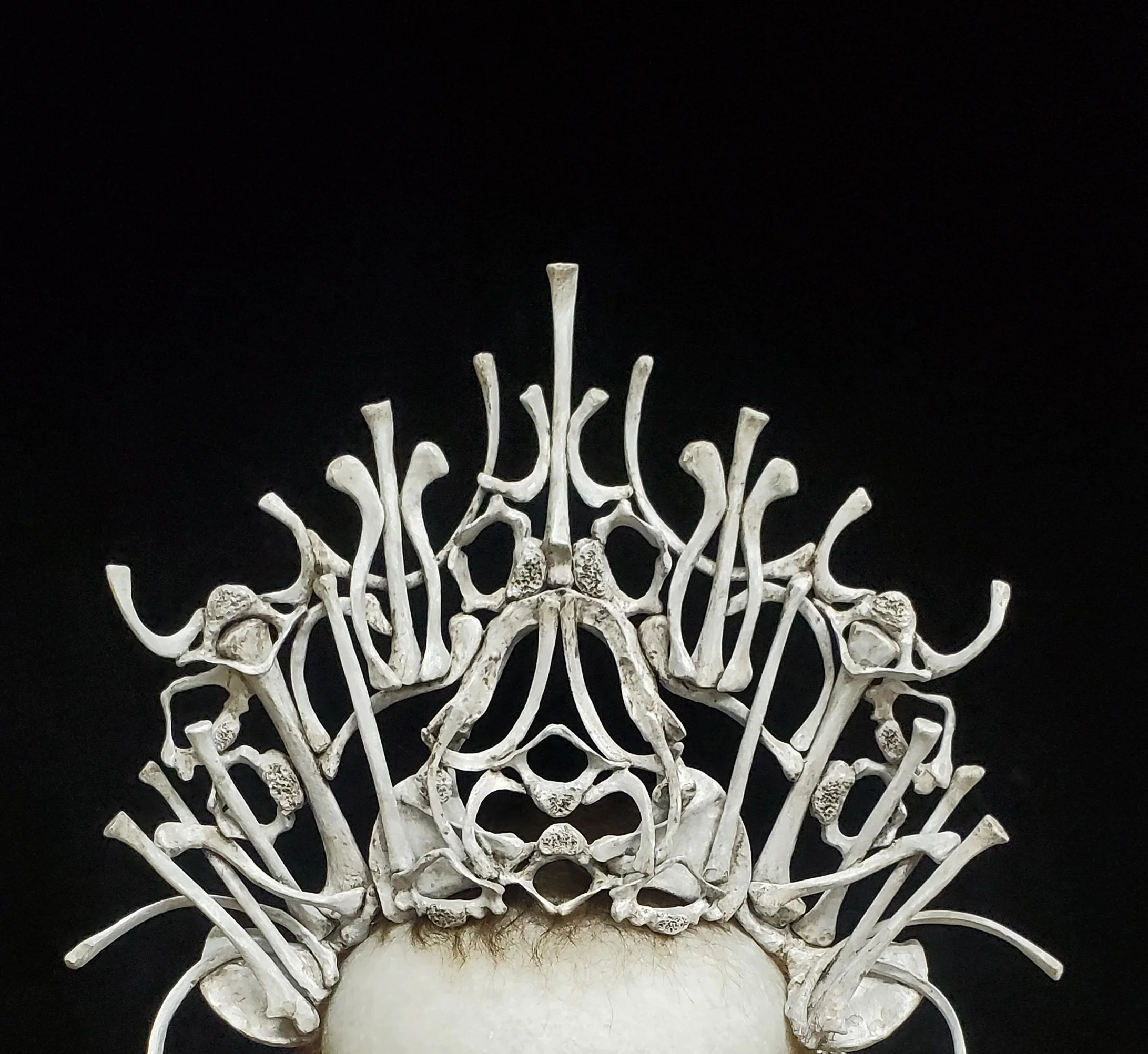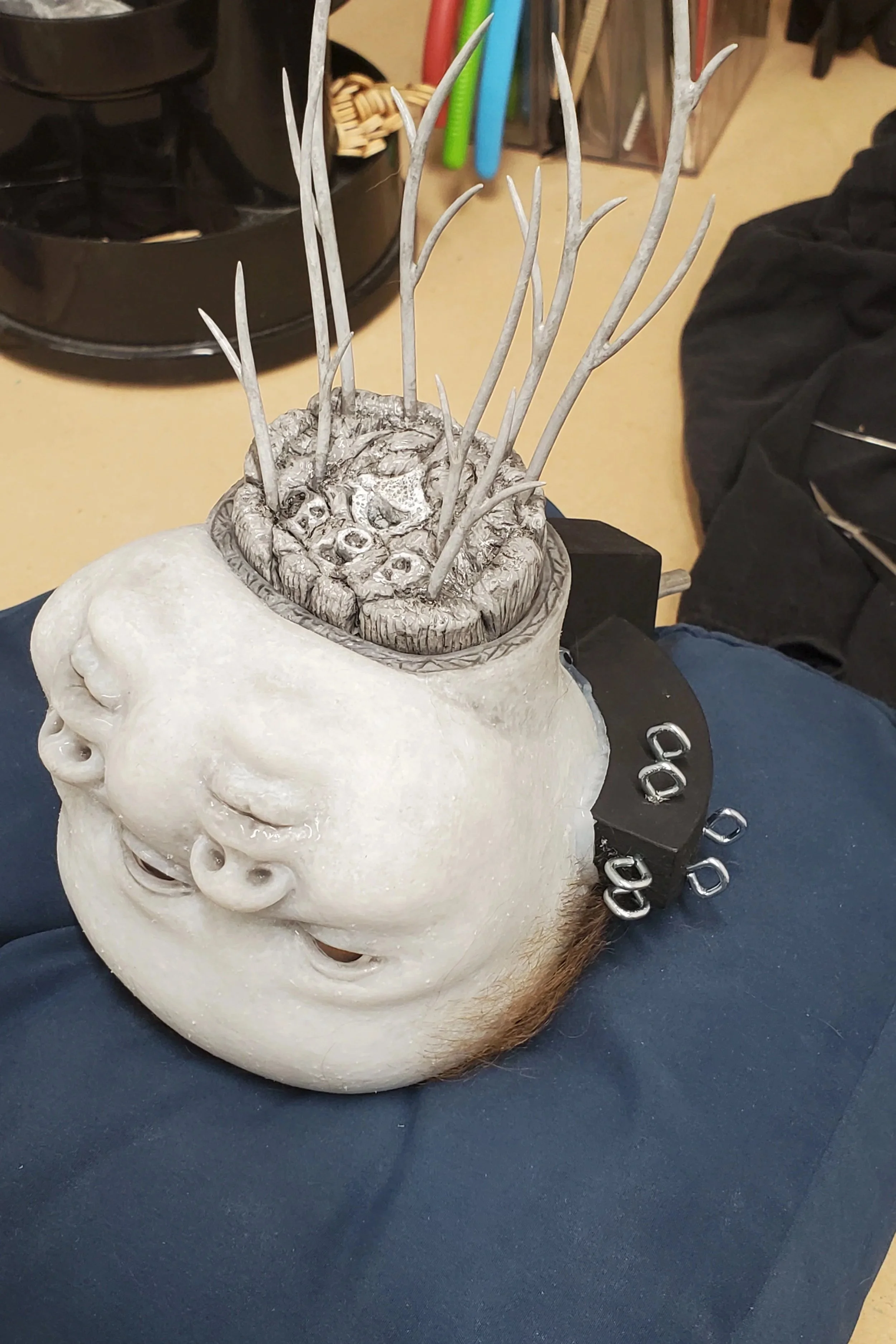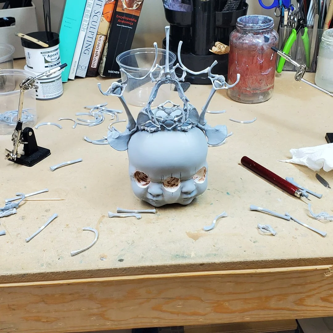 In 2025, I started work on the sculpture again with the headdress. Building it piece by piece on top of the rigid head model.