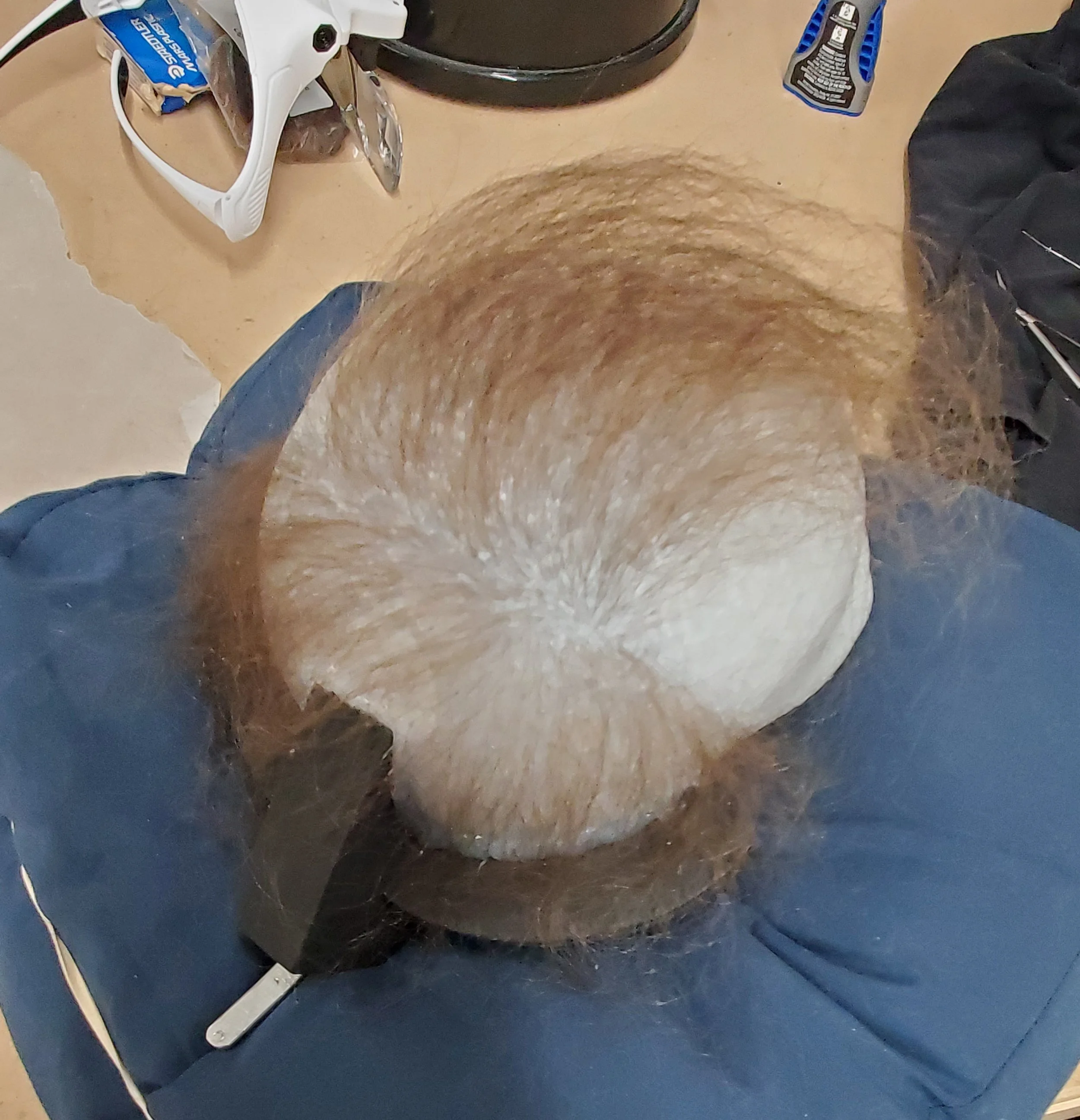 I knew most of the hair I was adding wouldn’t be seen in the finished tintype, but since this was my first attempt at rooting hair, I felt it good practice to complete the head.