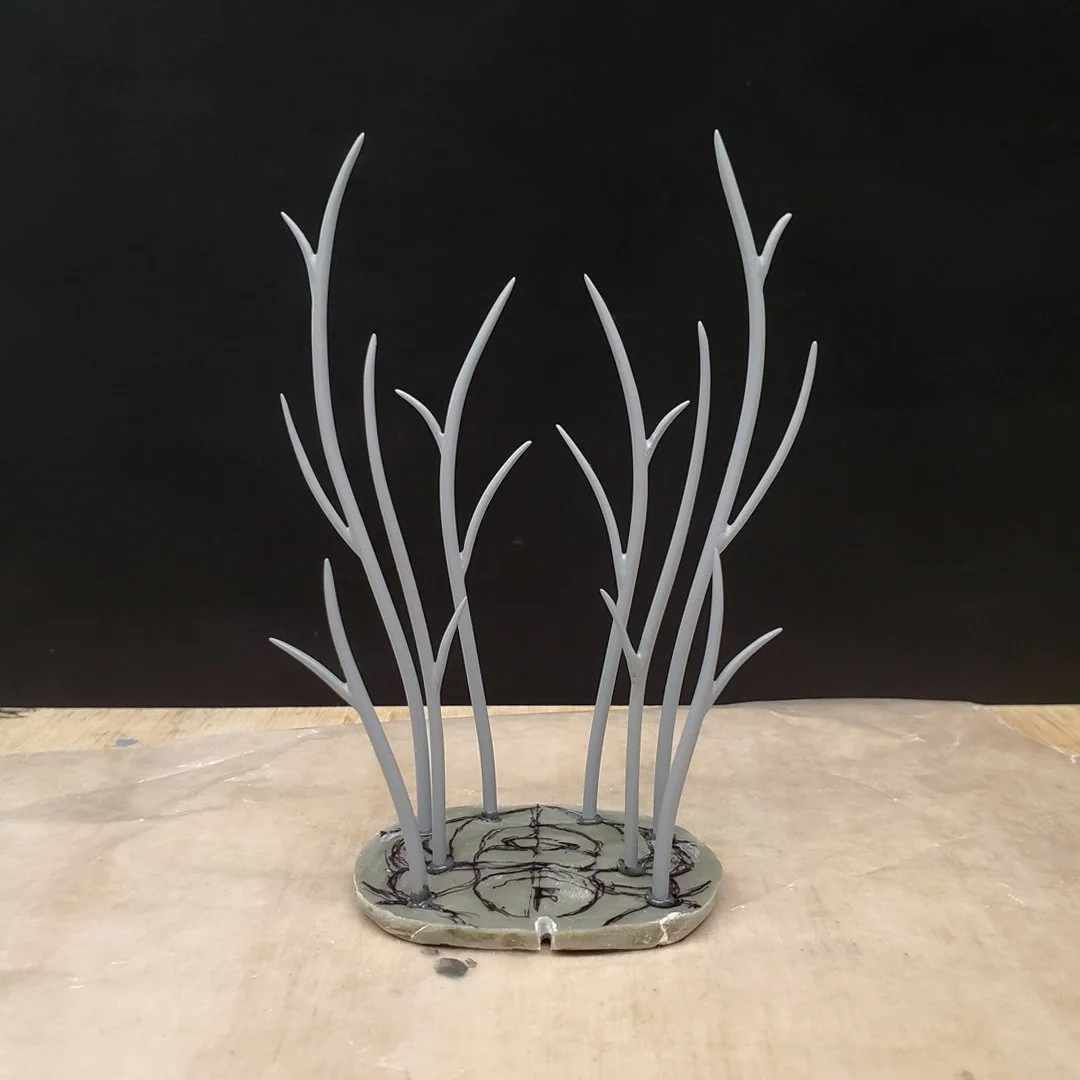This sculpture began in 2022, when I first began sculpting the neck veins. After much thought on how to do this, I decided on shaping and soldering brass in order to give the veins the strength and graceful arcs I needed.