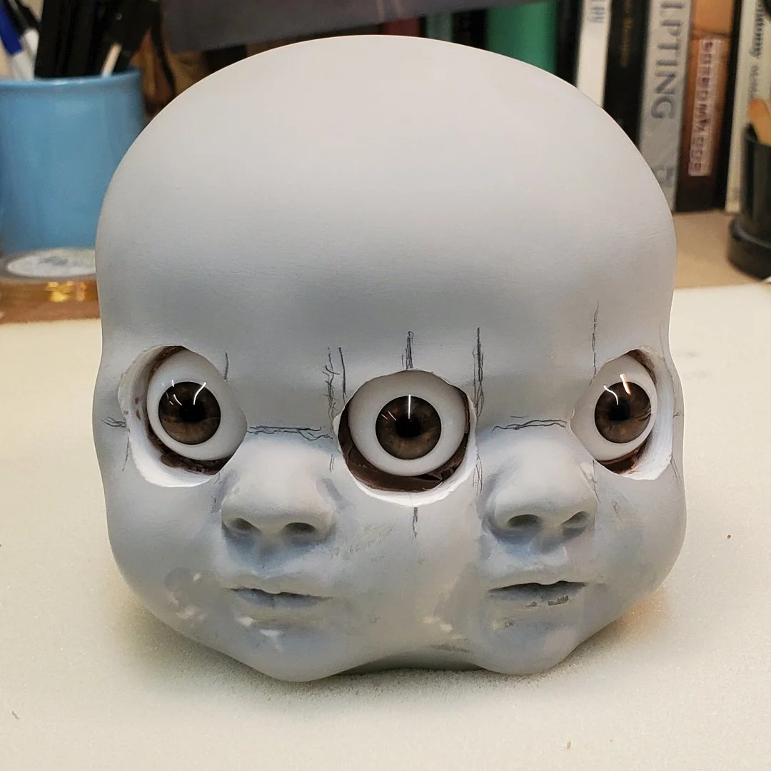 Once all three eyes were sculpted in, a mold box was built and a silicone mold was poured.