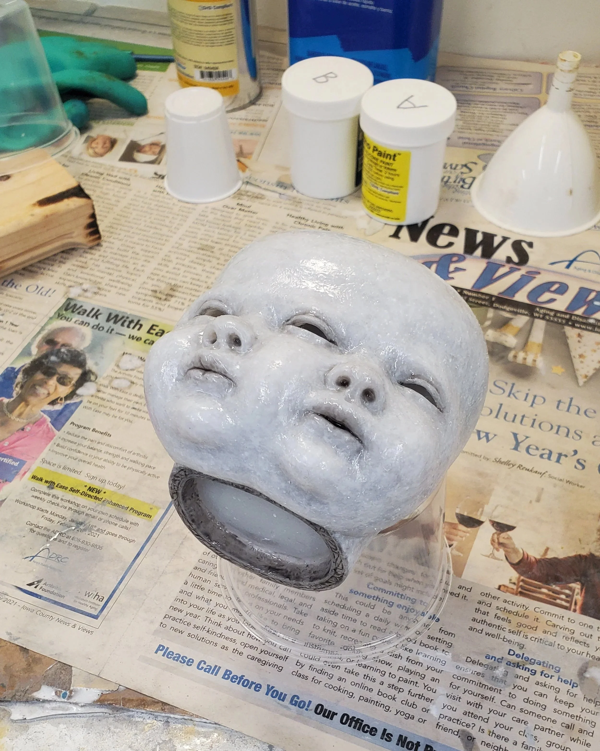 A resin head was made from the mold and a long time was spent sanding, smoothing, and refining all details.