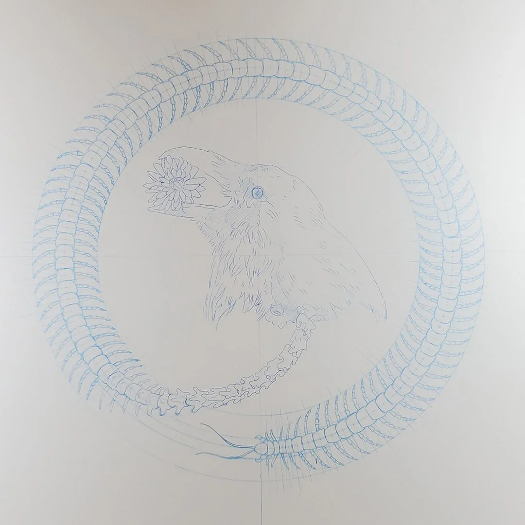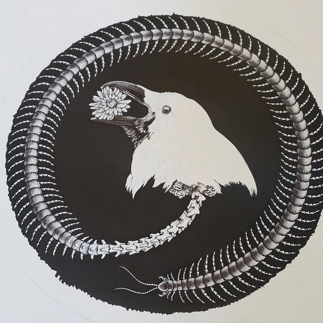 In February 2025, I began work on the shirt illustration that would go with my record artwork for Pygmy Lush’s TOTEM. The drawing was 17x17 inches and was based on the sculpture and tintype I made for the inside record insert.