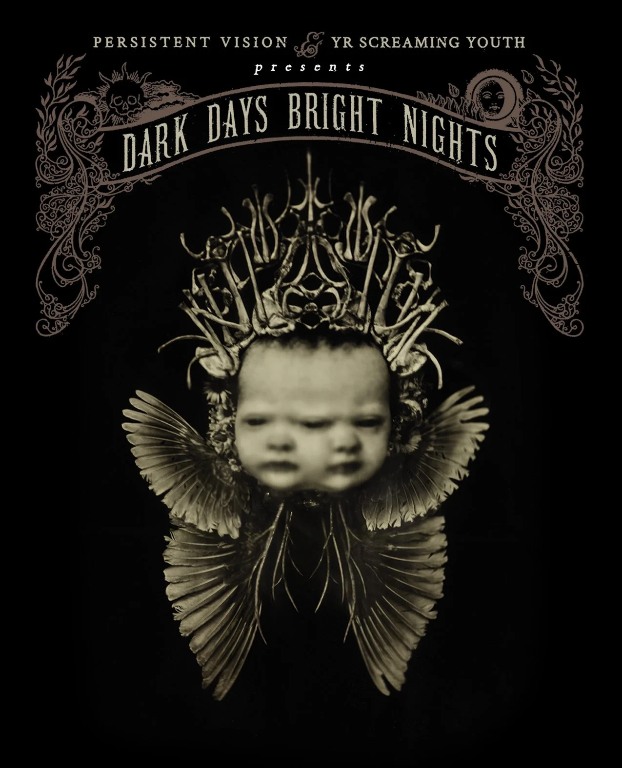 Dark Days Bright Nights Music Festival. 2025. Poster and Branding. Richmond,VA. Tintype of an original sculpture, pen and ink with banner type lettered by hand. Presented by Persistent Vision Records and YR Screaming Youth.